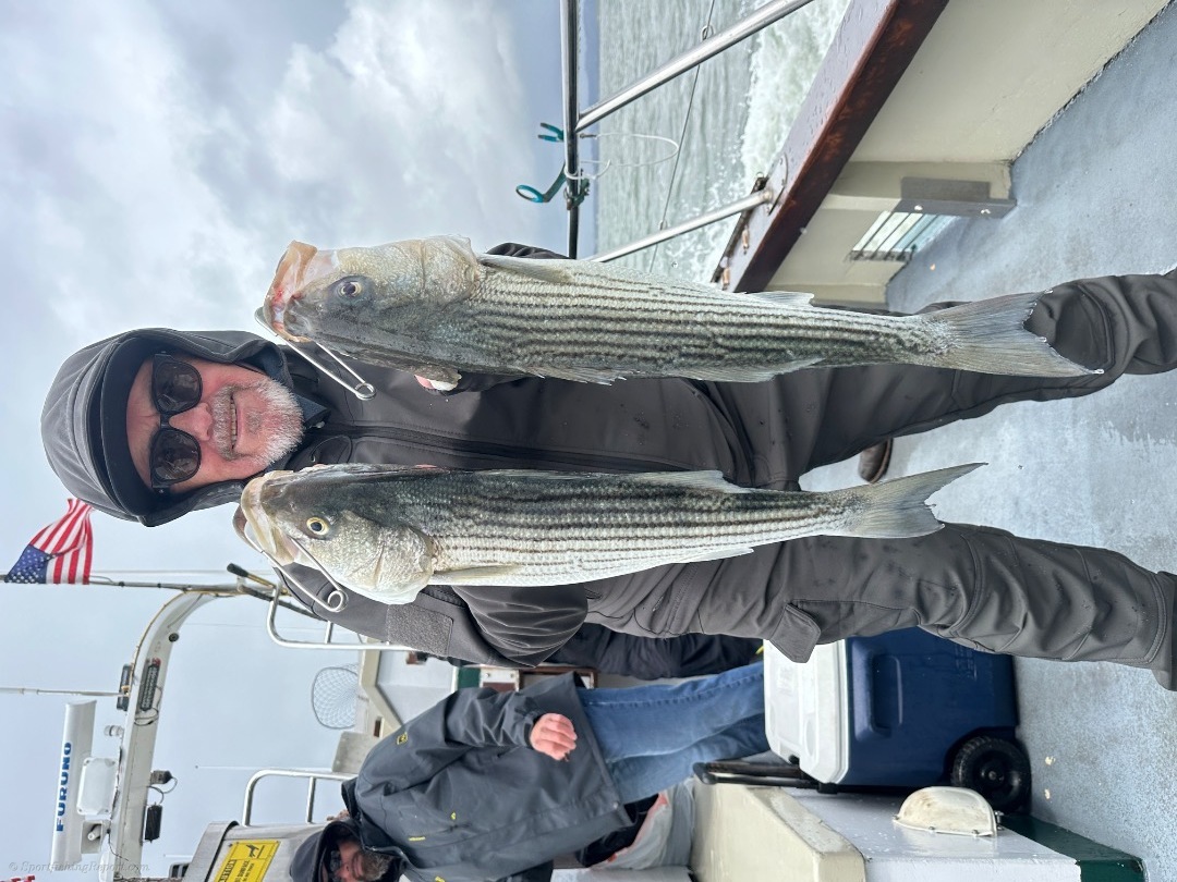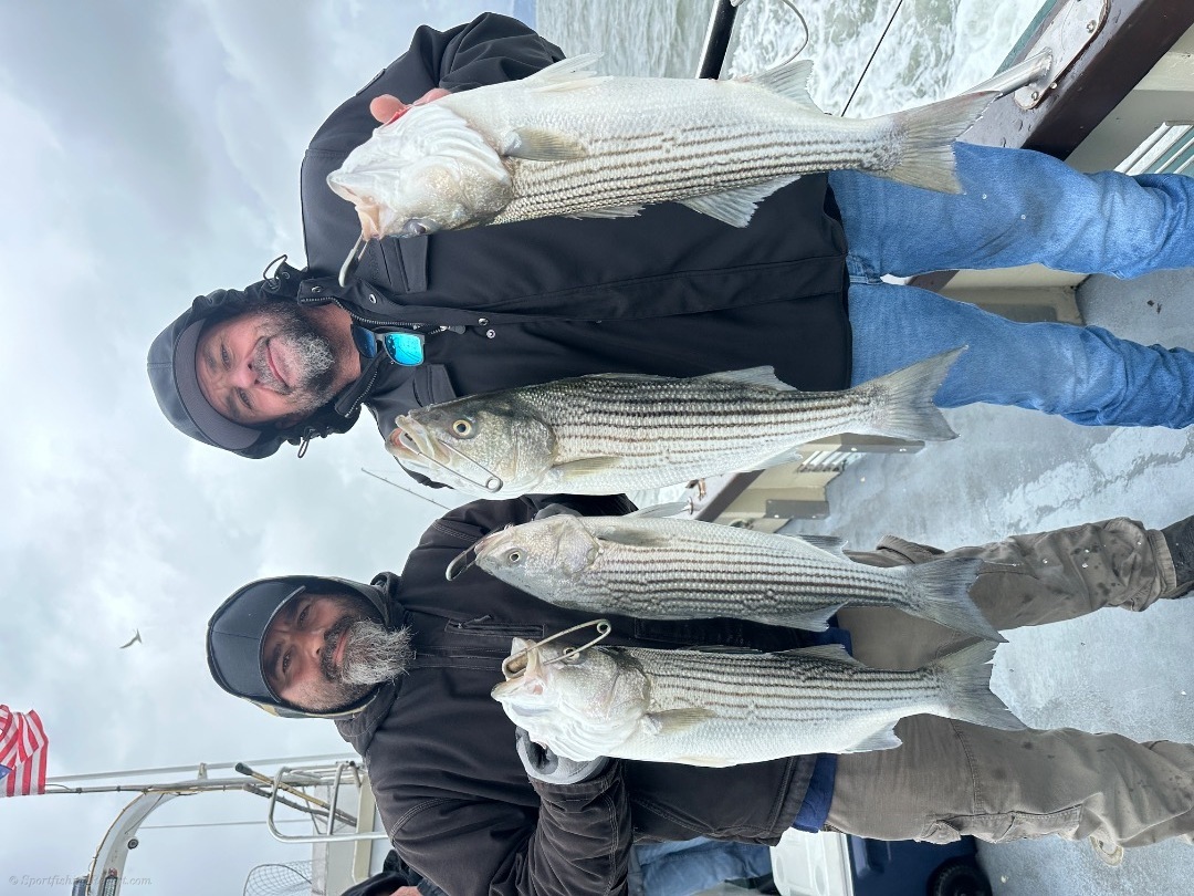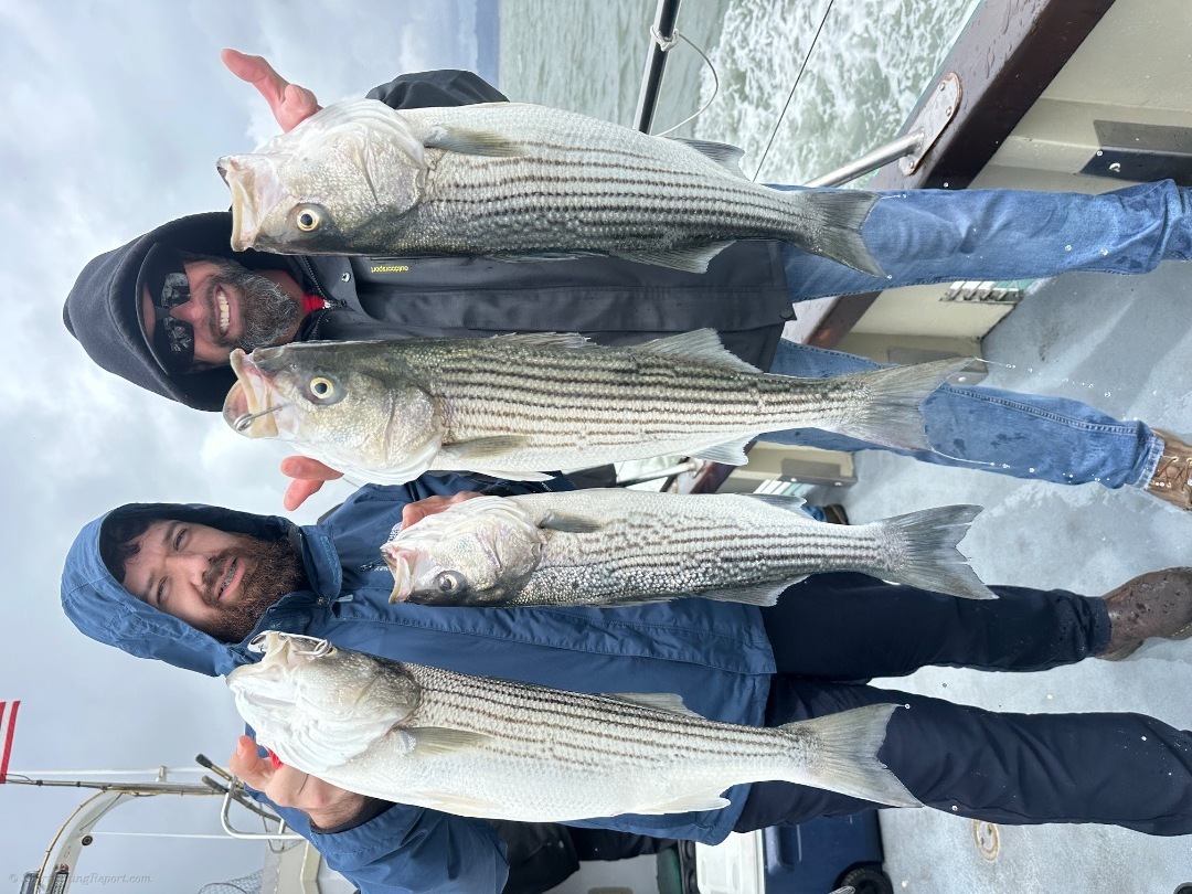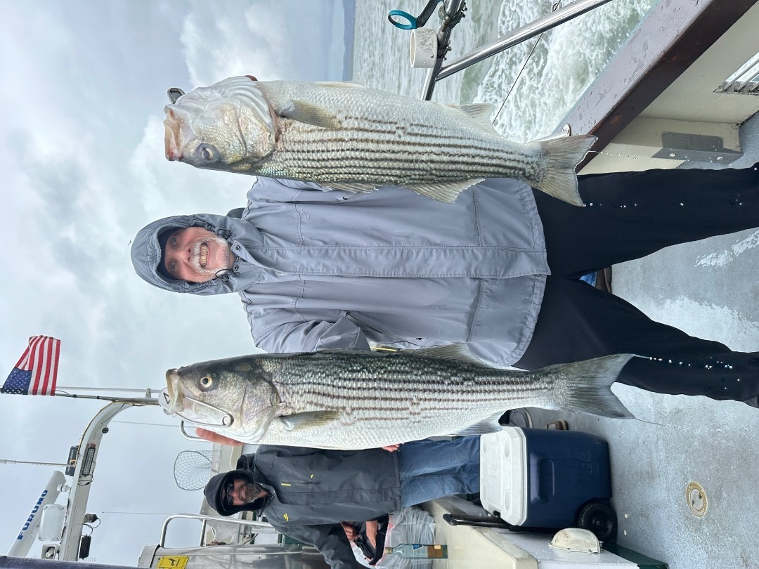 4/12/26. LIMITS OF BASS!!! Today we battled the rain and finished up with 10 LIMITS(20) of striped bass and 1 token halibut!! We have lots of room WEDNESDAY, THURSDAY, SATURDAY(1/2 day) & SUNDAY. Make your reservation on our website at www.lovelymartha.com